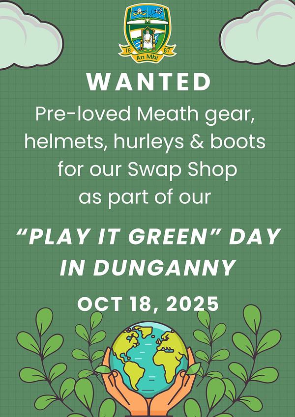 Meath GAA are collecting donations for their Swap Shop as part of "Play It Green" Day in Dunganny - October 18, 2025!