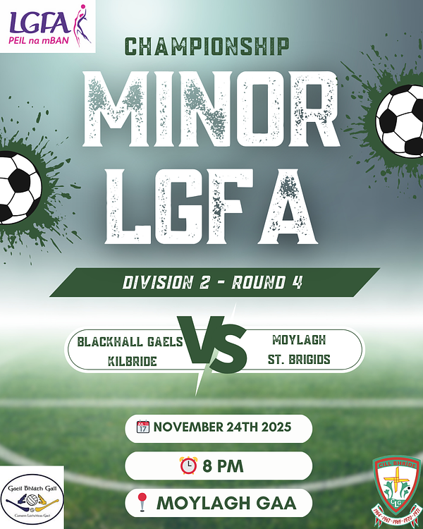 The next chapter of the Division 2 Minor Championship takes place tonight as our amalgamated Blackhall Gaels / Kilbride ladies travel to Moylagh to take on the combined Moylagh / St. Brigids team.