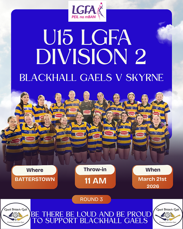 Blackhall Gaels U15 LGFA girls are back on the pitch tomorrow morning as they take on Skryne in Round 3 of Division 2.