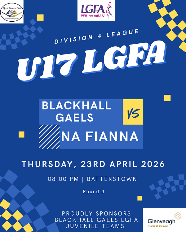 Round 3 is here for our U17 LGFA Division 4 girls this evening, Thursday April 23rd 2026, and they’re back on home ground as they take on Na Fianna in Batterstown. Throw in is at 8pm.